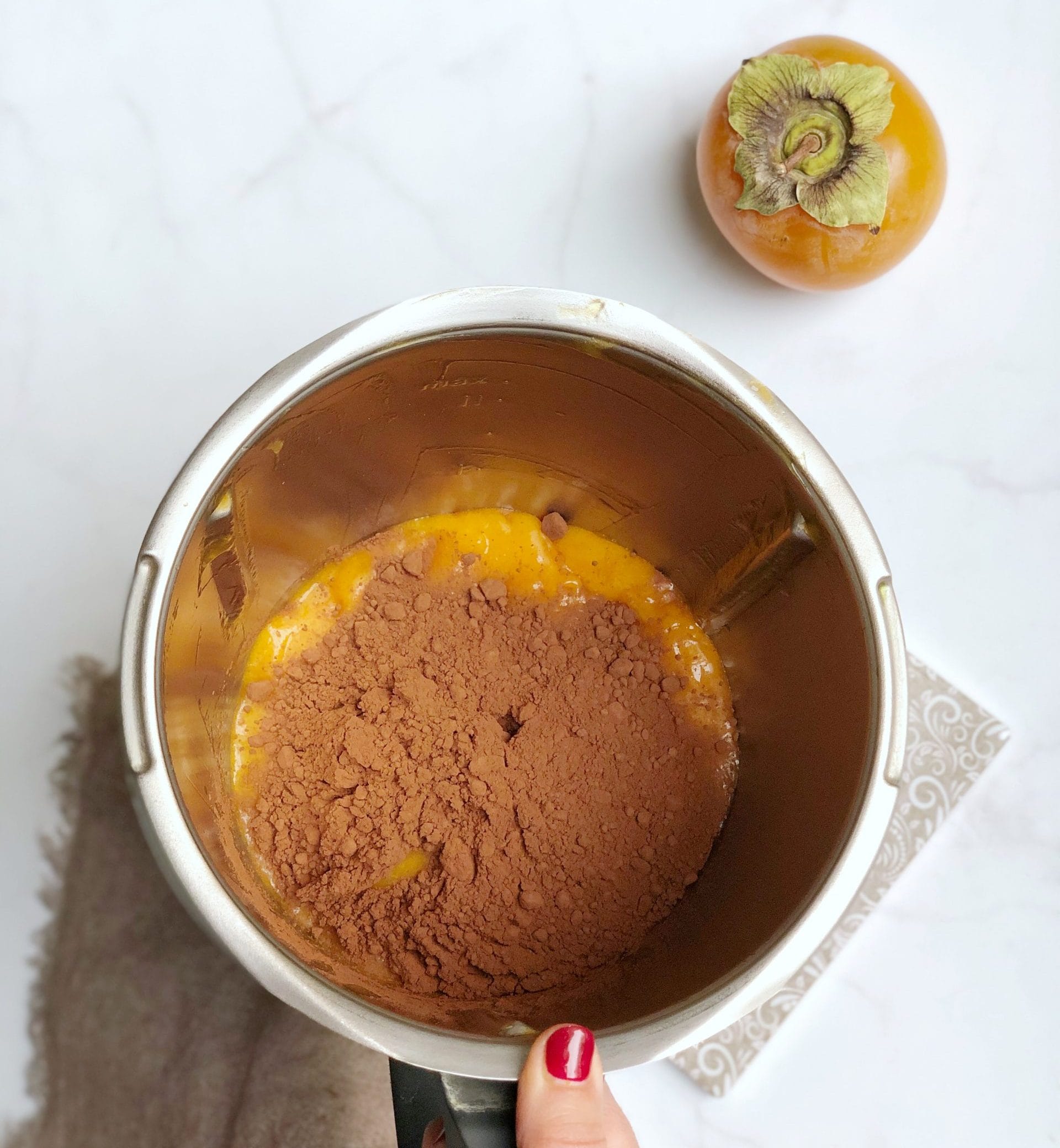 The rule for preparing this recipe is very simple: cocoa should be 10% of the total weight of the blended persimmons.
